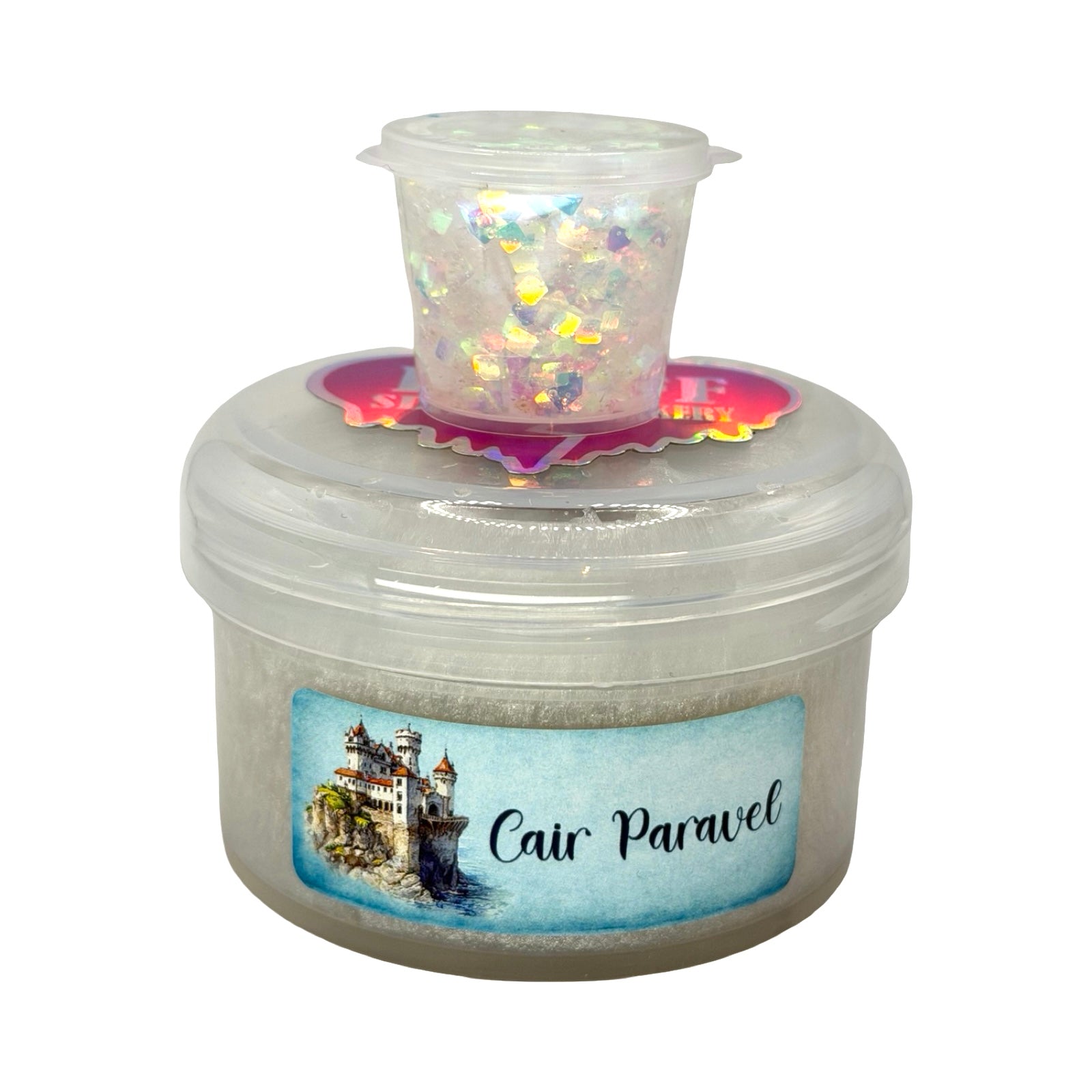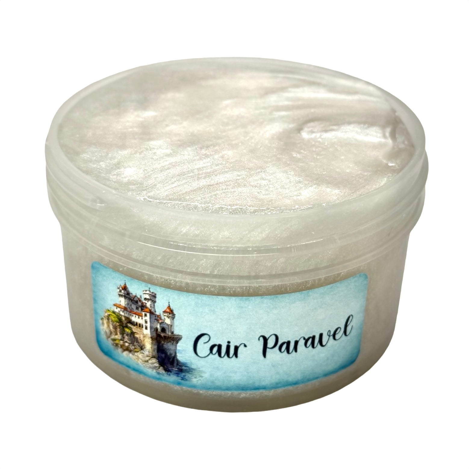 This shimmering pearlescent coated clear base mirrors the gleaming white stone of the legendary castle, polished to catch every glimmer of light. Topped with an iridescent glitter bomb, it sparkles like sunlight dancing across a magical seaside palace. Scented like a freshly baked marmalade roll straight from the castle kitchens, the slime has notes of zesty orange, buttery cake, cinnamon, brown sugar, and warm butterscotch.