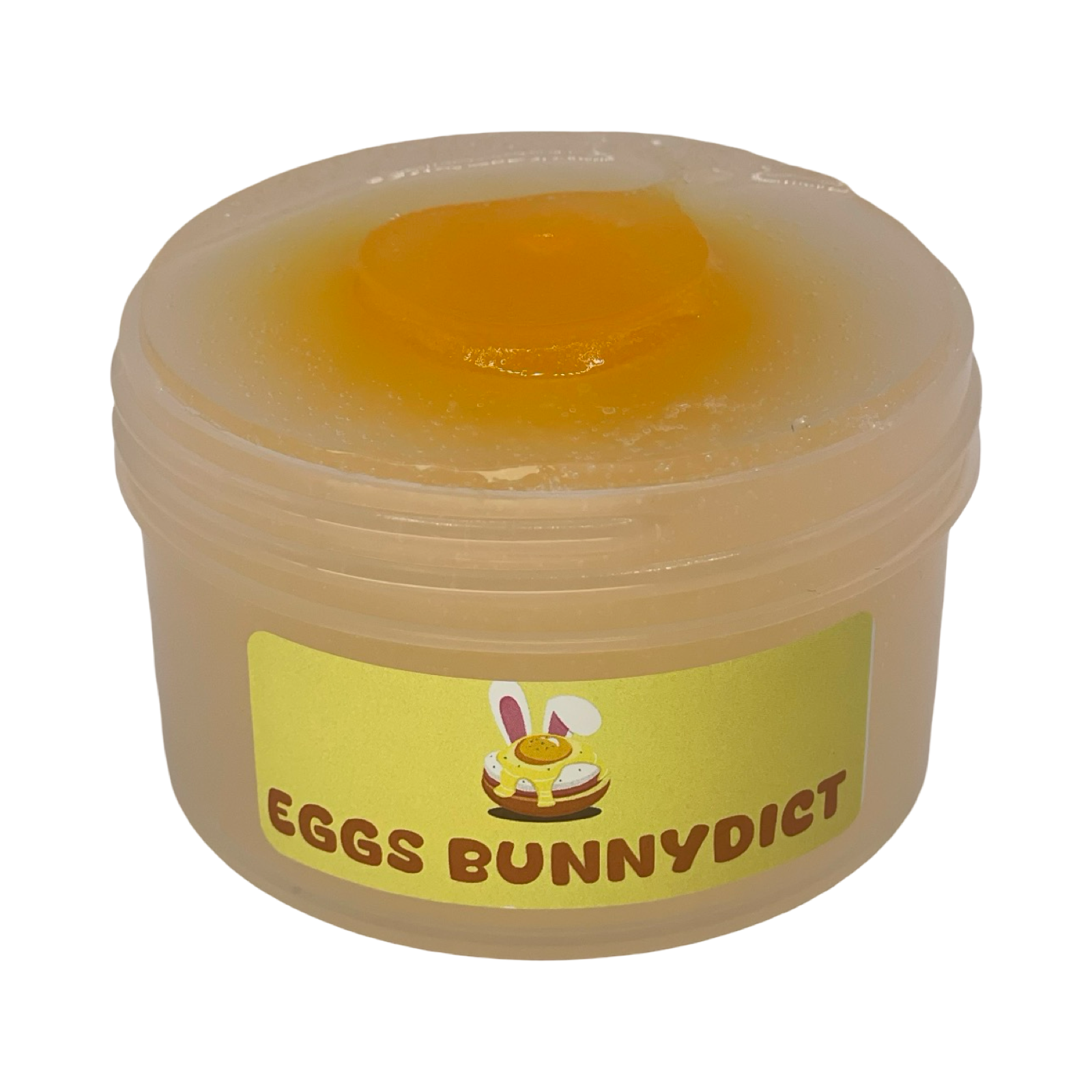 Eggs Bunnydict is a whimsical milky gel slime with an icy float, perfectly representing a sunny-side-up or over-easy egg! 🍳