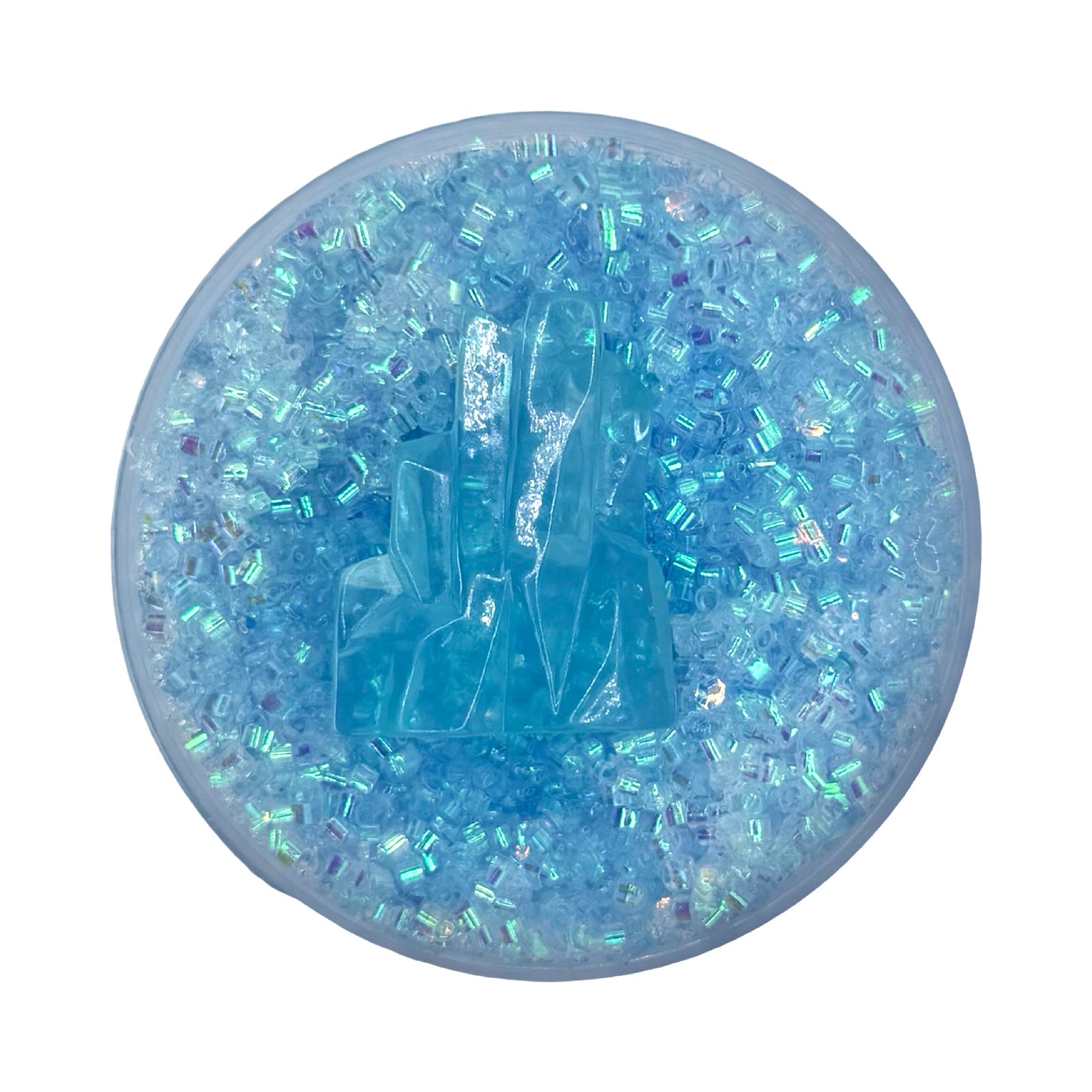 A frosty blue silica crust forms the base, crackling like ice beneath your fingers, while a delicate bingsu float drifts above like snow caught in still air. Finished with a shimmering white disc sequin topper, it glitters like freshly fallen snow under a pale winter sky. The scent is a chilling yet seductive blend of sharp pine needles and cold cedarwood, softened by whispers of cinnamon and vanilla like warmth trapped beneath the frost. Complete with an ice block charm (sizes will vary), Eternal Winter captures the haunting magic of a land locked in snow, where winter reigns without end.