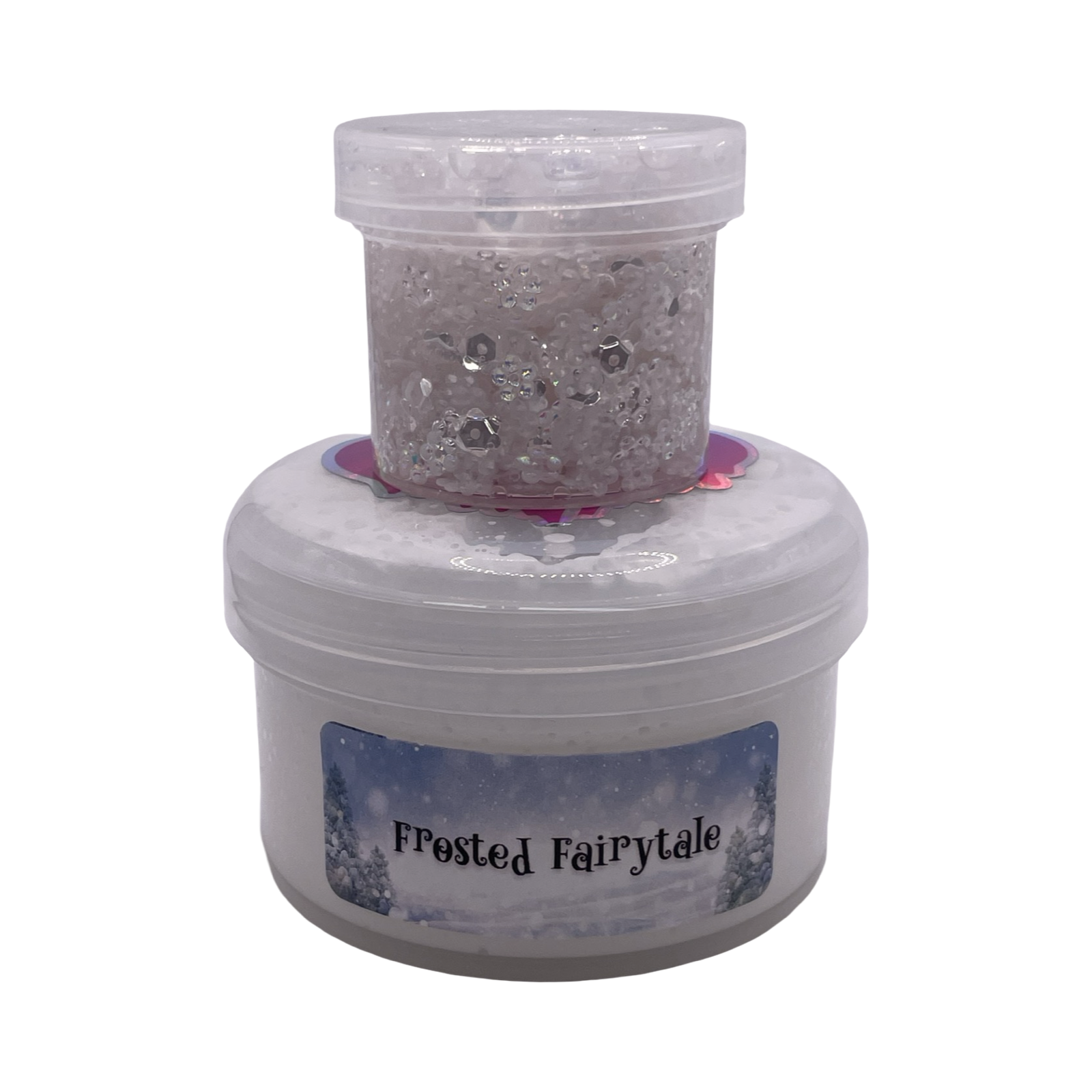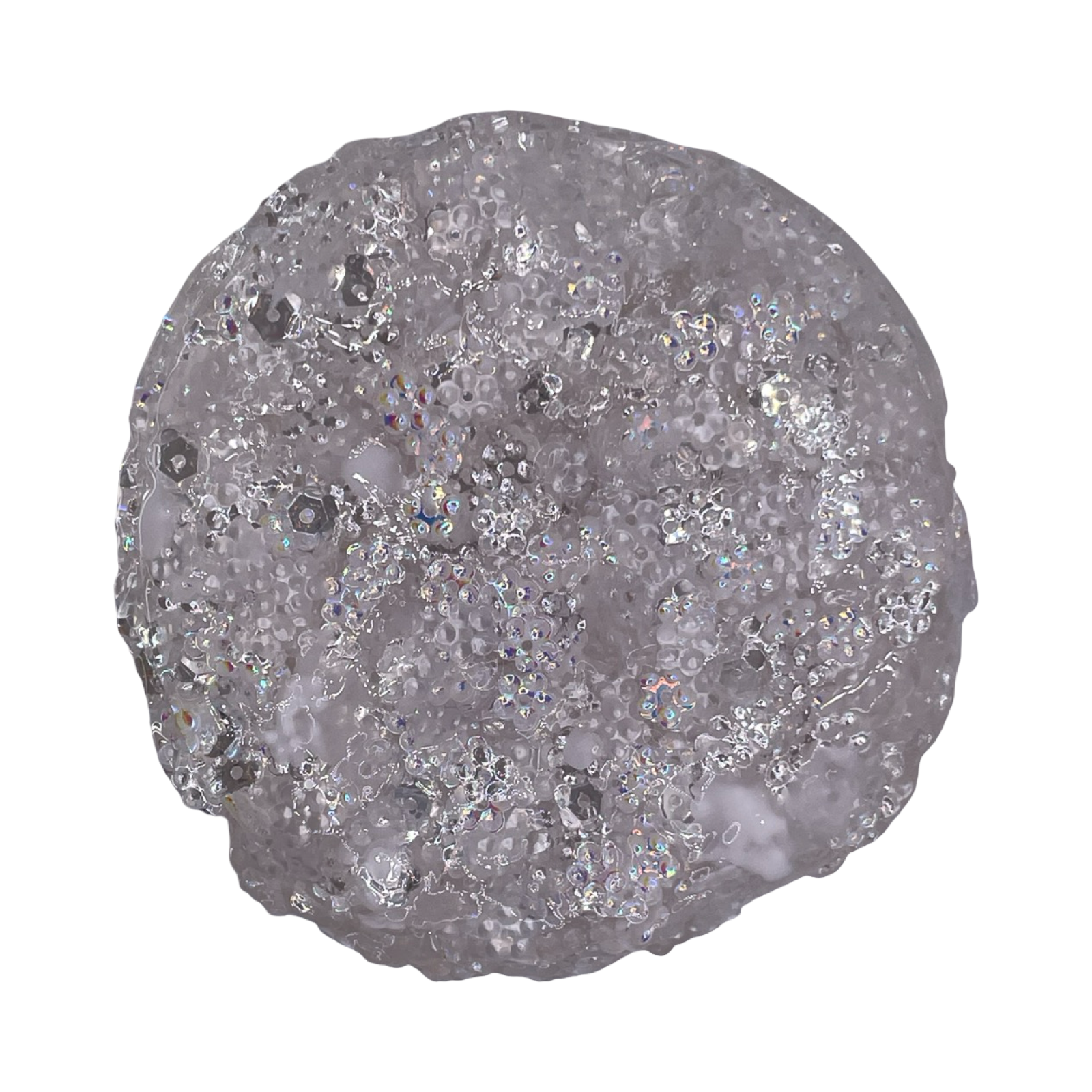 Frosted Fairytale captures the magic of a snowy wonderland. This white glue microfloam is topped with a sparkling sequin bomb, creating layers of crisp crunches and mesmerizing crackles. It’s wonderfully stretchy and perfect for slow, satisfying squeezes. Scented like a sweet slice of birthday cake, this whimsical slime feels like a celebration tucked inside a winter dream.