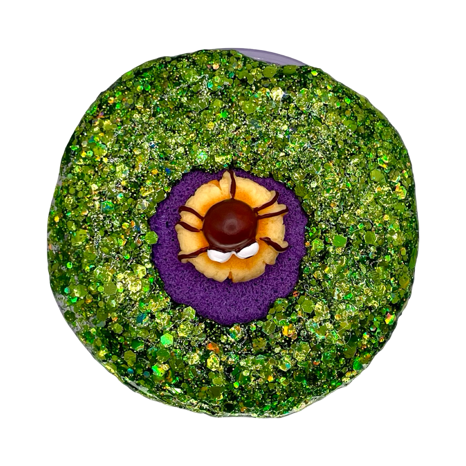 Ghoul-Glazed Donuts comes topped with a 1 oz. green glitter bomb for that extra glimmering touch. Inspired by the flavors of the season, it’s scented like freshly baked donuts blended with pumpkin, cinnamon, sugared vanilla, and warm spices, perfectly capturing the cozy essence of Halloween! Each jar also includes a mini Halloween donut charm (styles will vary).