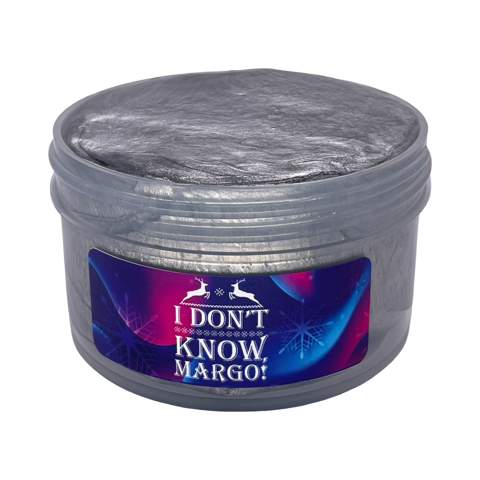 Inspired by Christmas Vacation’s iconic duo, Margo and Todd, this slime pays tribute to their matching track suits and ultra-sleek aesthetic. It features a chrome-coated clear base for a glossy, modern shine and is scented with a woodsy blend of fresh earth, eucalyptus, and warm woods, nodding to their refined, minimalist vibe. Each jar comes with a miniature track suit jacket charm, making it the perfect homage for fans of the movie’s most unforgettable neighbors.