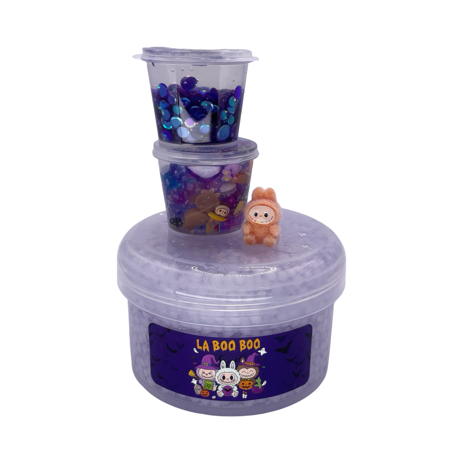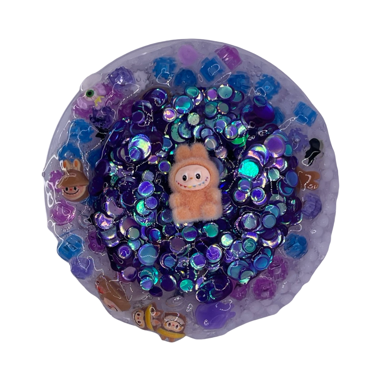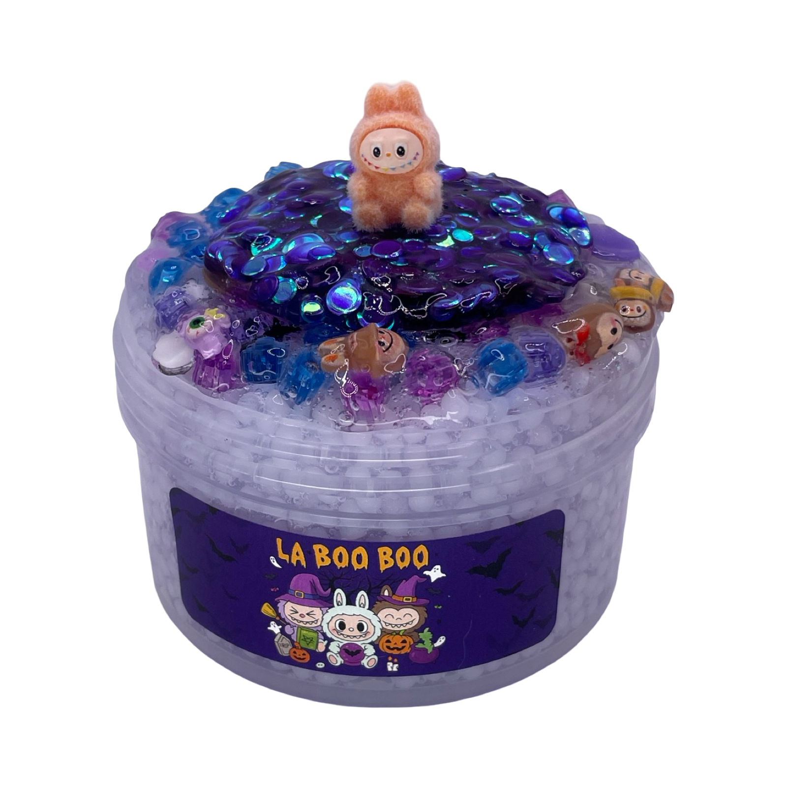 La Boo Boo is a shimmering purple-blue slushee bead slime sprinkled with adorable Labubu charms, colorful block beads, and sparkling disc sequins. It’s crunchy and snappy, yet has a soft, cushiony feel from the slushee texture and you still get the occasional pokes from the block beads and charms! Each slime includes a Labubu charm and is scented like fizzy grape soda for a sweet, nostalgic finish.
