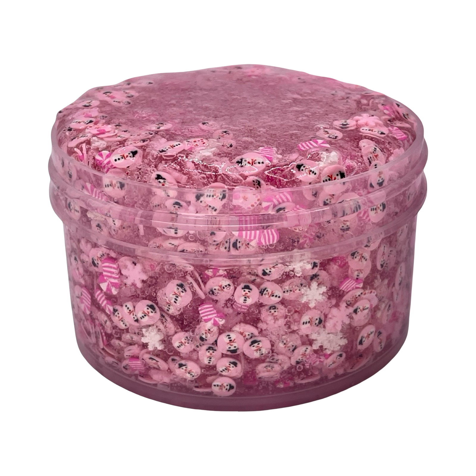 A festive all-pink fimo bomb slime filled with cheerful holiday fimo slices for the ultimate girly Christmas look. It’s scented like SDJ 40, a lush blend of Black Amber Plum, Crème de Cassis, and vanilla woods for a sweet, cozy, and slightly elevated winter vibe. Finished with an adorable snowman Christmas charm, it’s perfect for anyone who loves an all pink-themed holiday.
