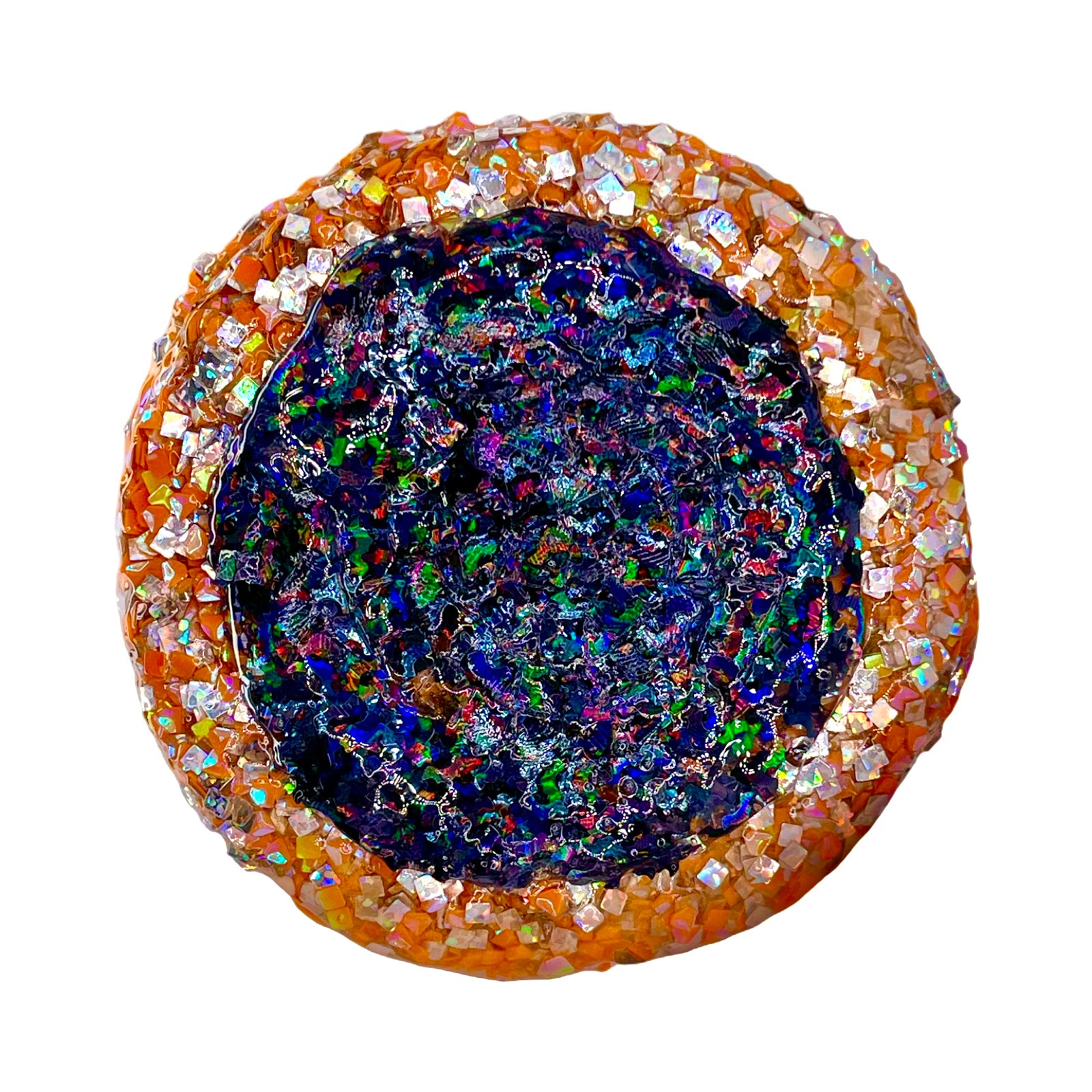 Pumpkin Disco is a plush, buttery soft slime that shines under the light with its sparkling disc and diamond glitter topper, plus a little bonus of holographic bat glitter. Decorating is half the fun! Swirl your bats, into the creamy butter base, then finish with the glitter topper for a dazzling spooky mix. Once combined, this chubby butter slime is a dream to squish, stretch, and squeeze! The bat glitter adds just a touch of texture, but thanks to the dense, full butter base, it isn’t overly abrasive. Scented with a decadent blend of caramel apple, sweet kettle corn, and a whisper of crisp fall leaves, Pumpkin Disco smells like a festive fall outing. Each slime comes with a disco pumpkin charm.