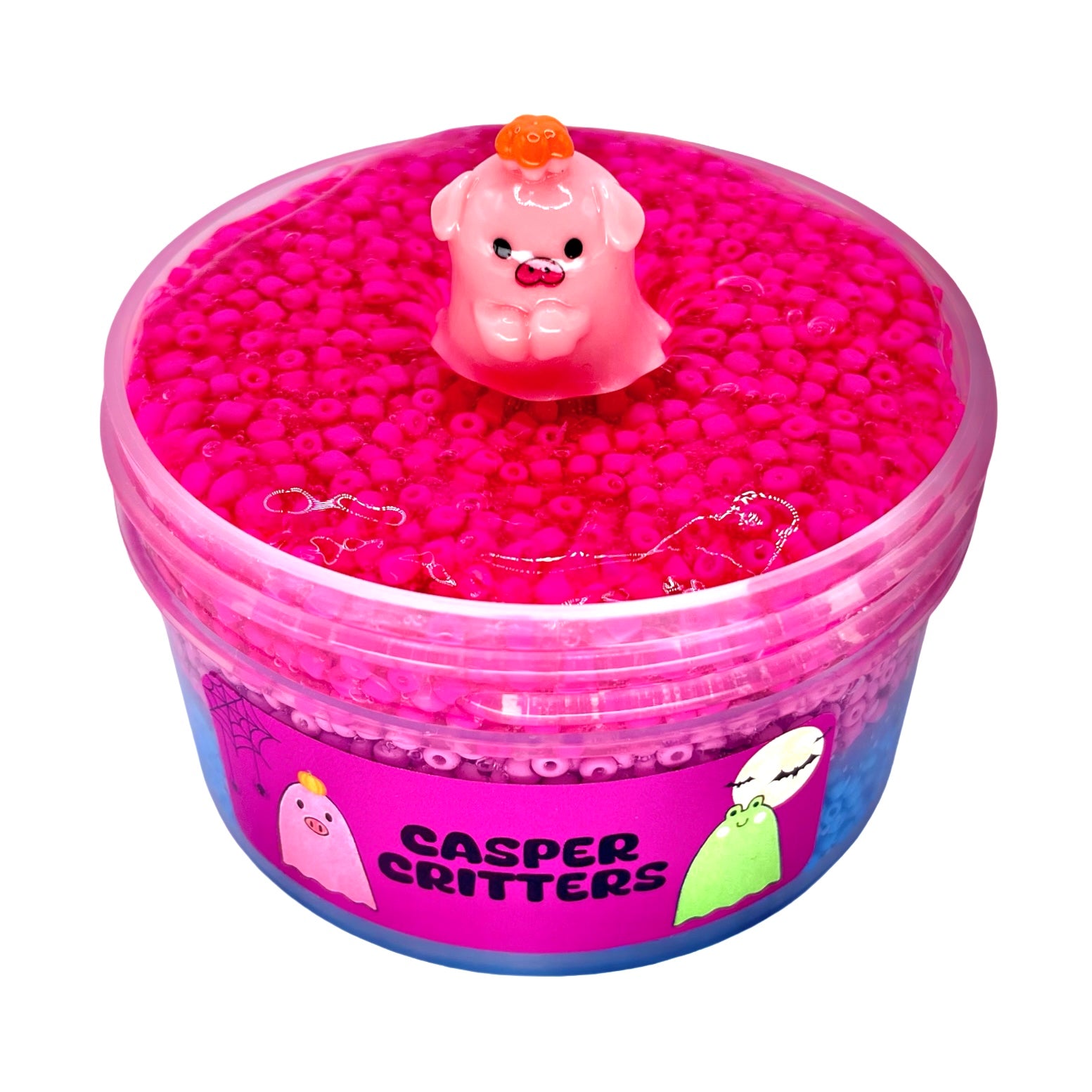 Casper Critters is scented like buttery caramel corn, giving it a warm, delicious aroma that perfectly matches the crunchy, fun texture. This slime is best enjoyed with slow squishes and gentle stretches. To keep your play experience at its best, we recommend limiting playtime with seed bead textures and keeping inflation minimal, which helps reduce fallout. We’re so excited to bring this texture back!