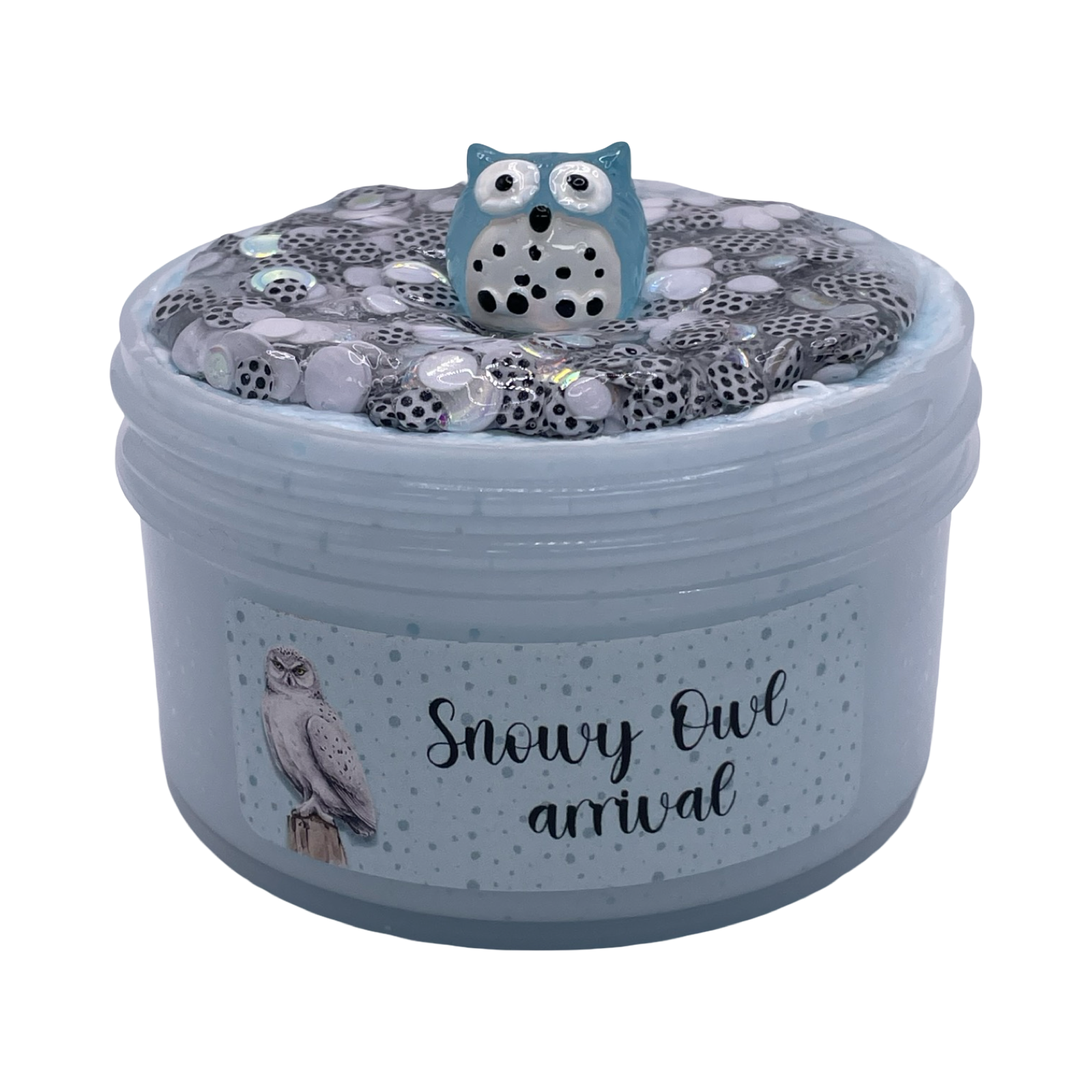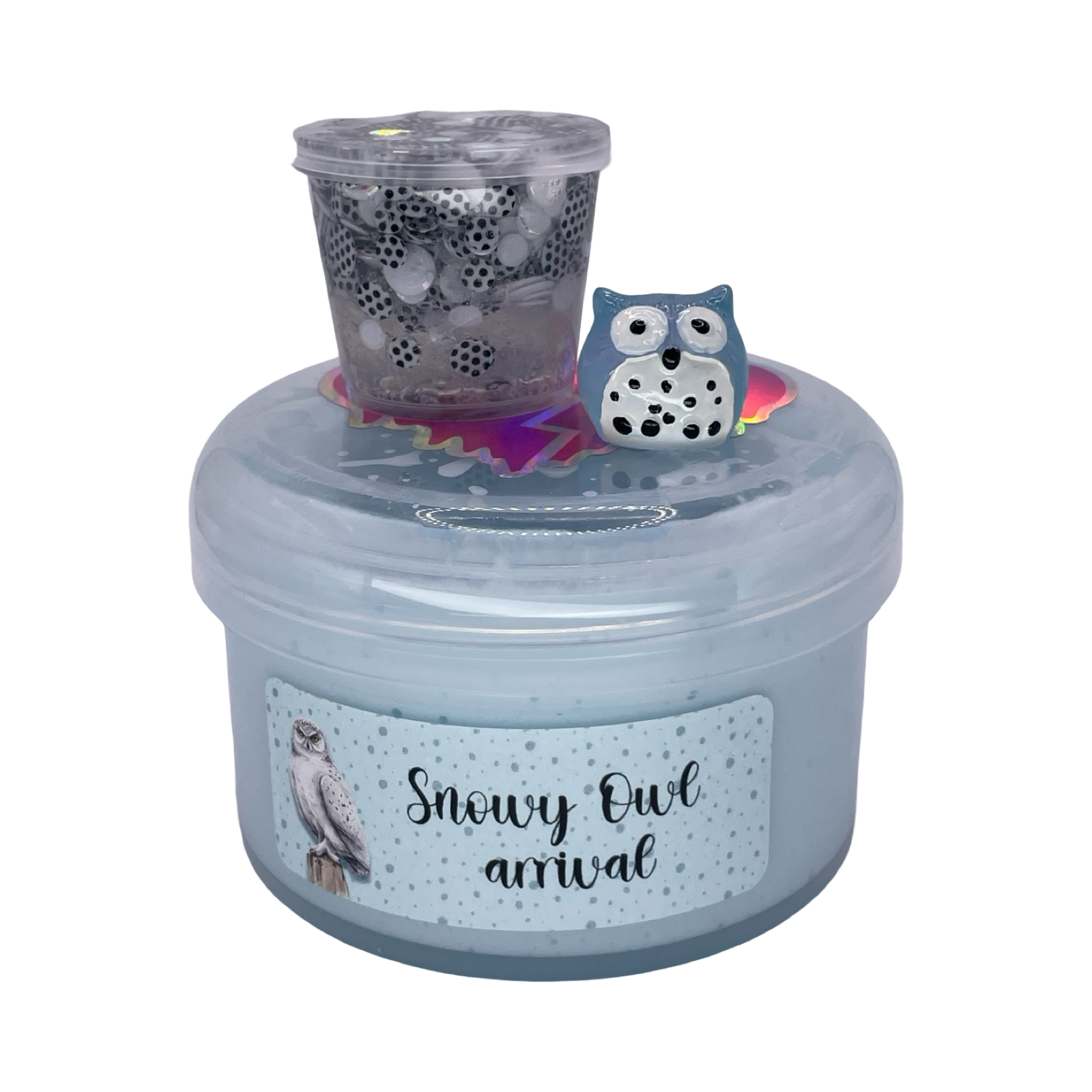 Bring a touch of enchanted winter to your collection with Snowy Owl, a pale blue paper pulp slime that’s soft, squishy, and full of woodland magic. It’s topped with sparkly white and polka dot disc sequins for a frosty, feathery, whimsical look and comes scented with a fresh herbal blend of lavender, thyme, pink florals, and dusty woods, like a crisp walk through a magical forest. Each jar includes a charming snowy owl figure (colors may vary) to add a magical woodland companion to your slime experience!