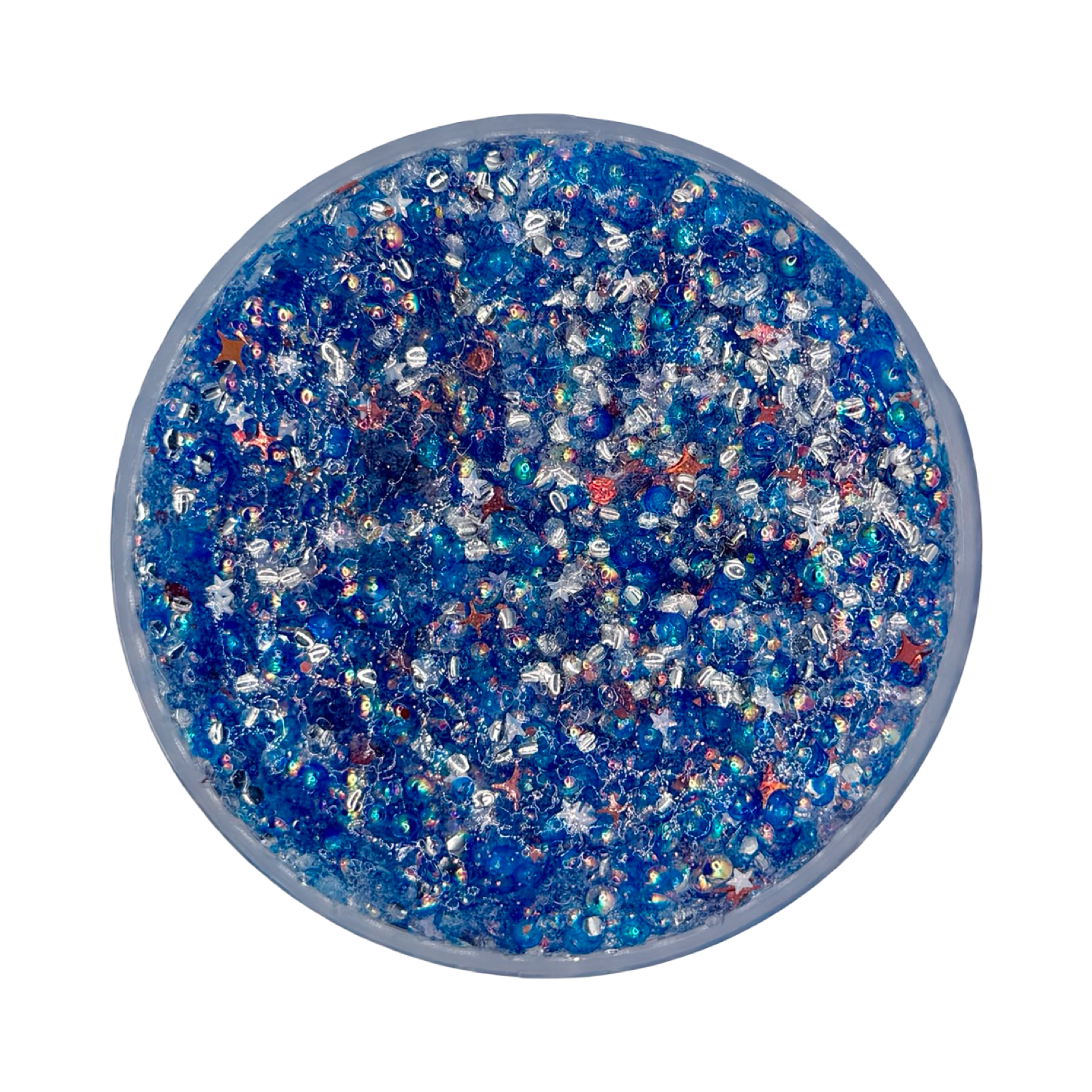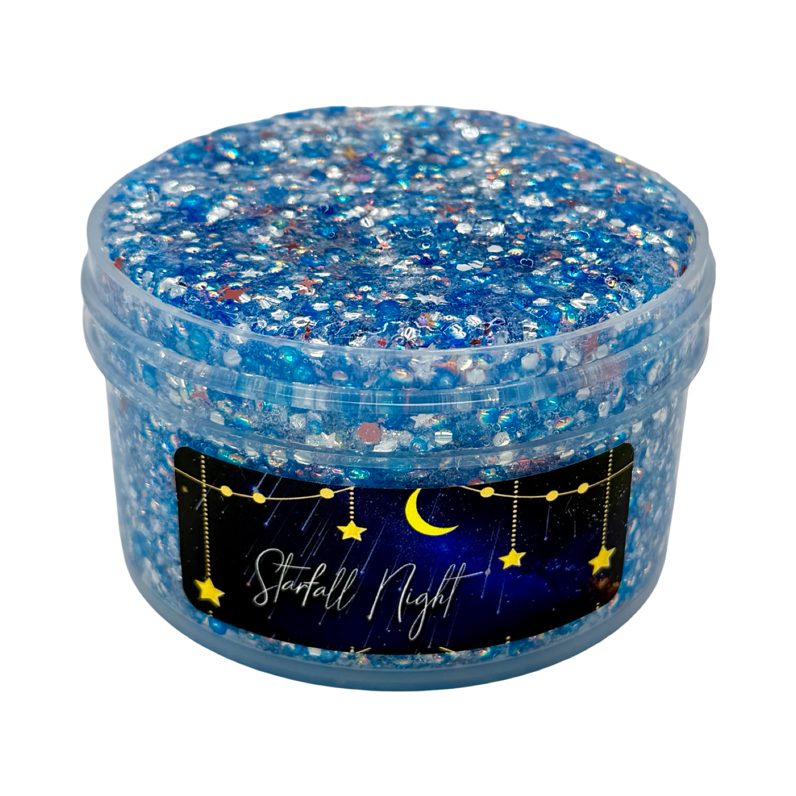 This slime features our brand new bubble sequin bomb texture in a stunning shimmering metallic blue that crackles, pops, and shimmers with every squeeze. It’s sprinkled with star glitter for extra celestial sparkle, just like the glowing lights of Starfall dancing across the Velaris sky. Scented in a dreamy, romantic blend of rich chocolate truffles, candied lavender, and sweet rose jam. Each slime comes with a collectible Velaris pin (please don’t leave the pin in the slime).