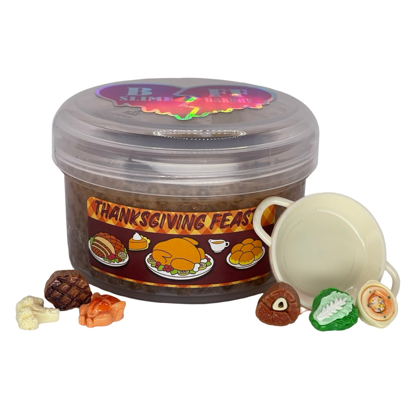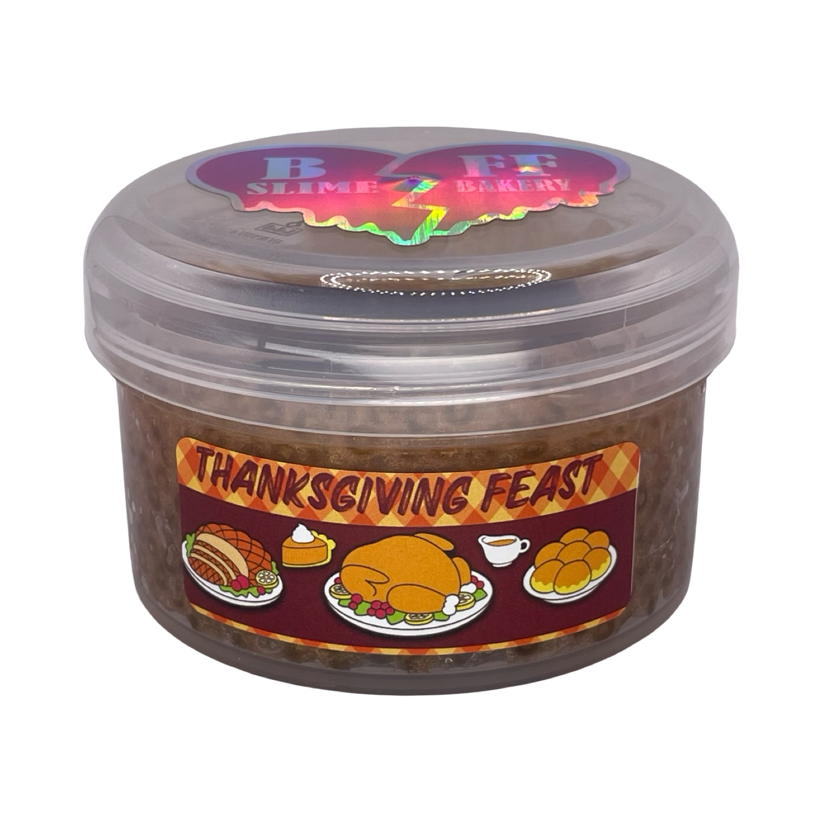 Thanksgiving Feast is a warm and inviting seed bead slime that delivers soft crunches with every gentle squeeze. Its smooth, stretchy base is perfect for slow pulls and relaxing play, while the seed beads add a light, satisfying texture. Scented like freshly baked cinnamon butter rolls, it brings all the comforting aromas of a holiday morning.