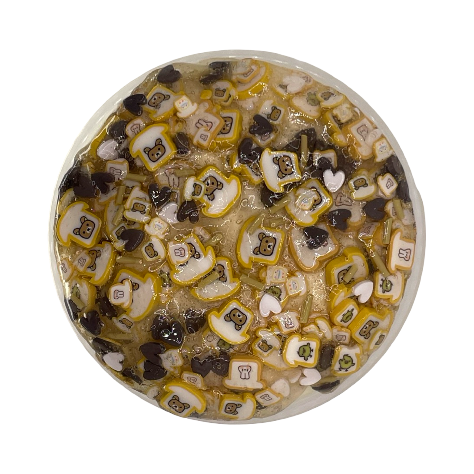 Inspired by the soft, airy top that sits on your favorite Dutch Bros drinks, this light and plush clay slime is creamy, soft, and just a little bit chewy. It’s scented like a delicious mix of banana milk, Nutella, and buttered toast, a comforting combo that’s as cozy as it sounds. Perfect for squeezing and stretching, this texture is a fun cousin to our cold foams and one we can’t wait for you to try! Each slime comes with three adorable animal toast charms and a miniature jar of jelly to top it all off (styles will vary).