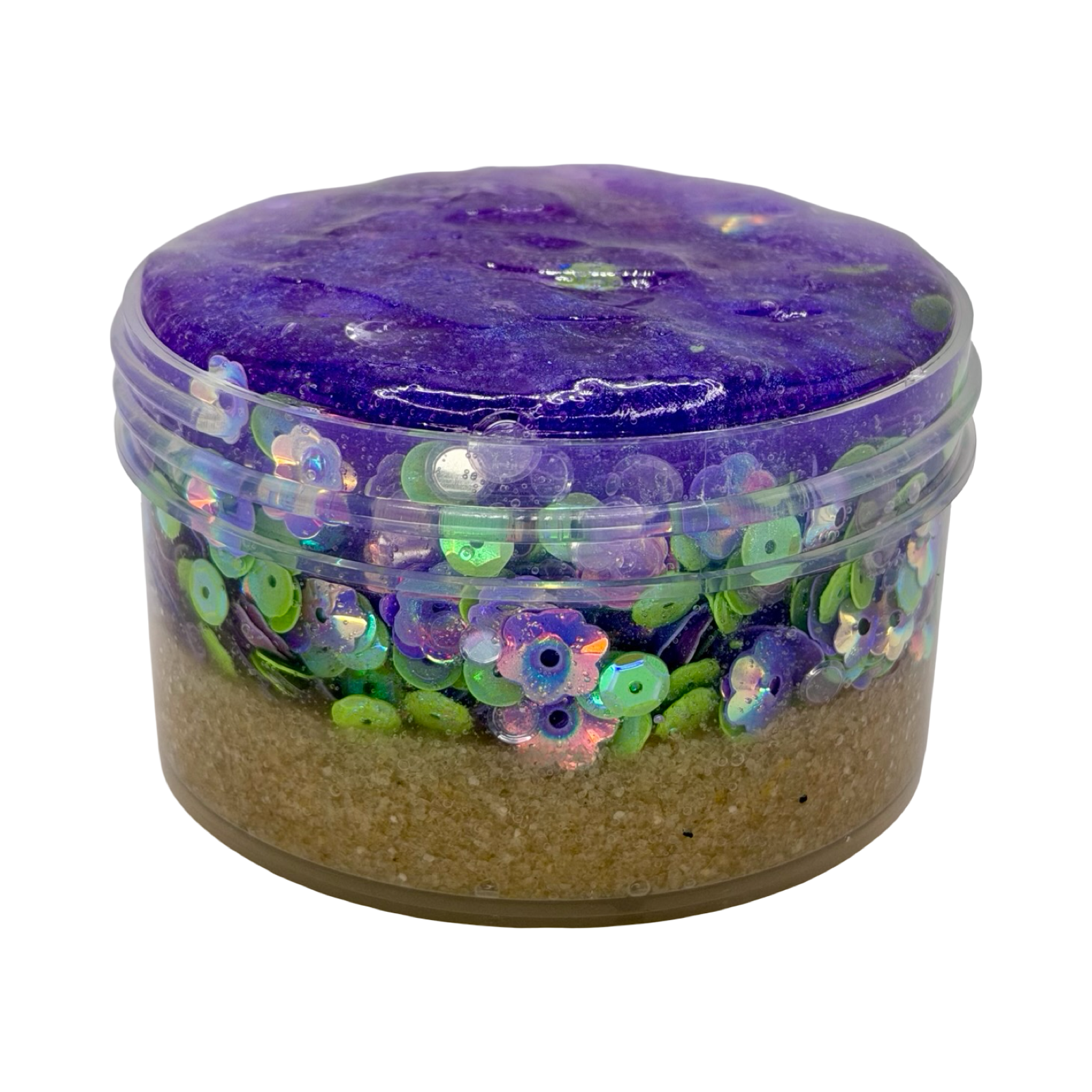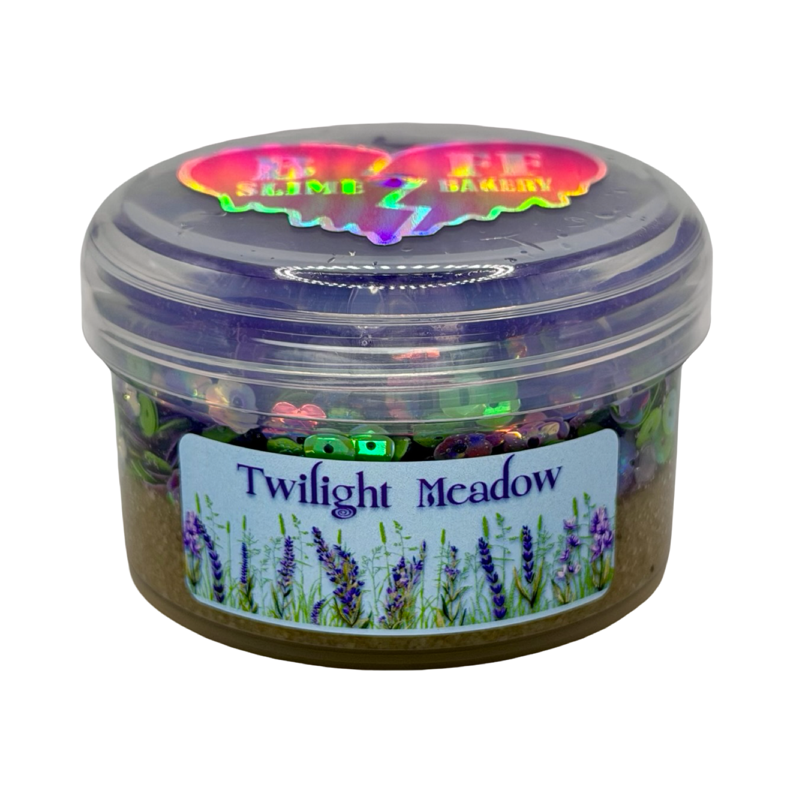 This beautiful slime features a sugar sand crust base topped with green sequins and lilac floral accents, reminiscent of the sparkling grass and soft blooms from Bella and Edward’s favorite spot. The texture is wonderfully crunchy, soft, and fun to squish and squeeze, evoking the peaceful magic of the forest at dusk. Scented like Sol de Janeiro 59, this blend of vanilla orchid, sugared violet, and a hint of sandalwood adds a romantic, dreamy warmth that perfectly captures the essence of eternal love under a twilight sky.