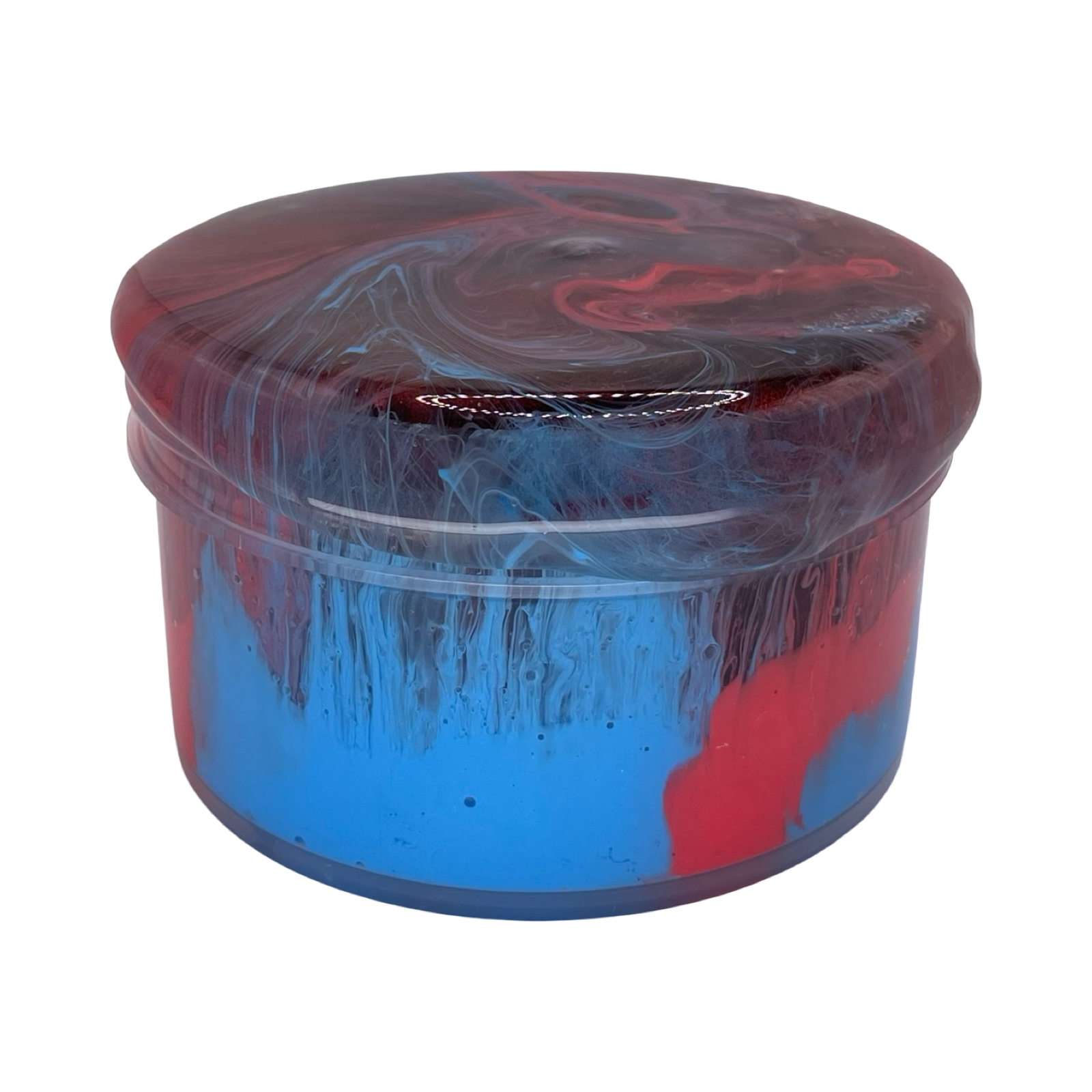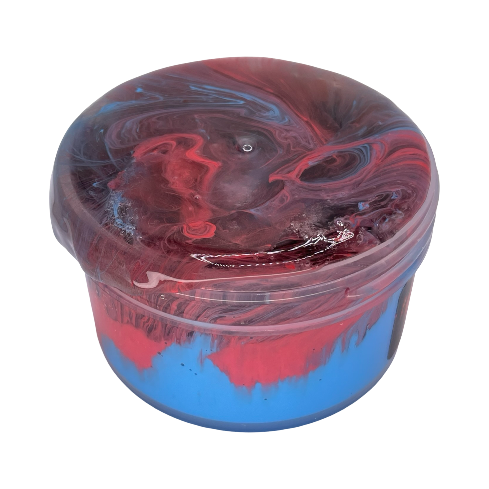 We’ve been waiting months to finally release this fun slime paying homage to one of our all-time favorite shows, Stranger Things. This is a DIY avalanche featuring a coated clear base with a dramatic black-to-red color shift, paired with two thick and glossy toppers in red and blue to avalanche, top it all off or mix in before avalanching a little snow fizz to bring the full Upside Down experience to life.